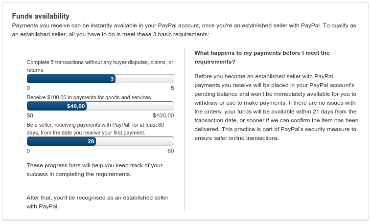 Caranya adalah memenuhi persyaratan dari pihak PayPal untuk menjadi penjual yang mapan dengan Paypal. Syarat-syaratnya adalah lihat screenshot dibawah ini